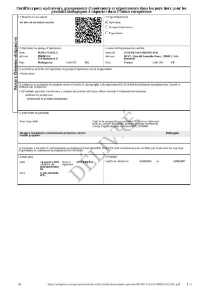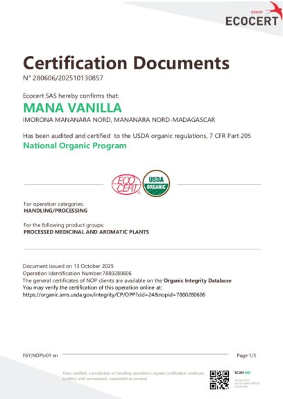 Madagascar vanilla beans organic – Yes. Certified organic – Yes.